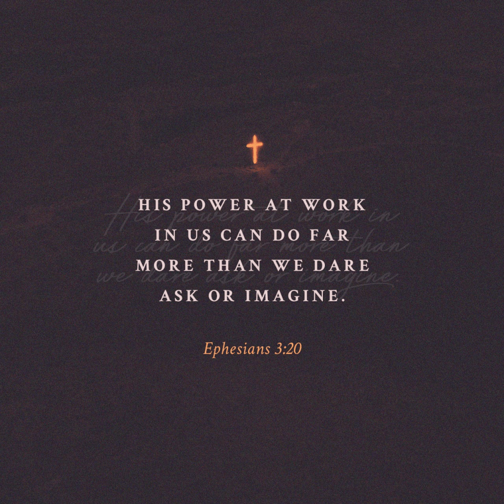 “Now to Him who is able to [carry out His purpose and] do superabundantly more than all that we dare ask or think [infinitely beyond our greatest prayers, hopes, or dreams], according to His power that is at work within us, to Him be the glory in the church and in Christ Jesus throughout all generations forever and ever. Amen.” (Ephesians 3:20-21 AMP)
