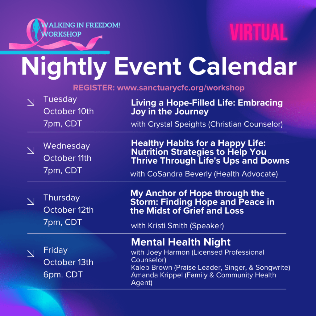 Perhaps you need to be in every session? No worries! We got you covered! Make plans to be inside the virtual room of the 9th Walking in Freedom! Workshop happening nightly October 10-13th. Click the link to register https://lnkd.in/gNqxKbY6