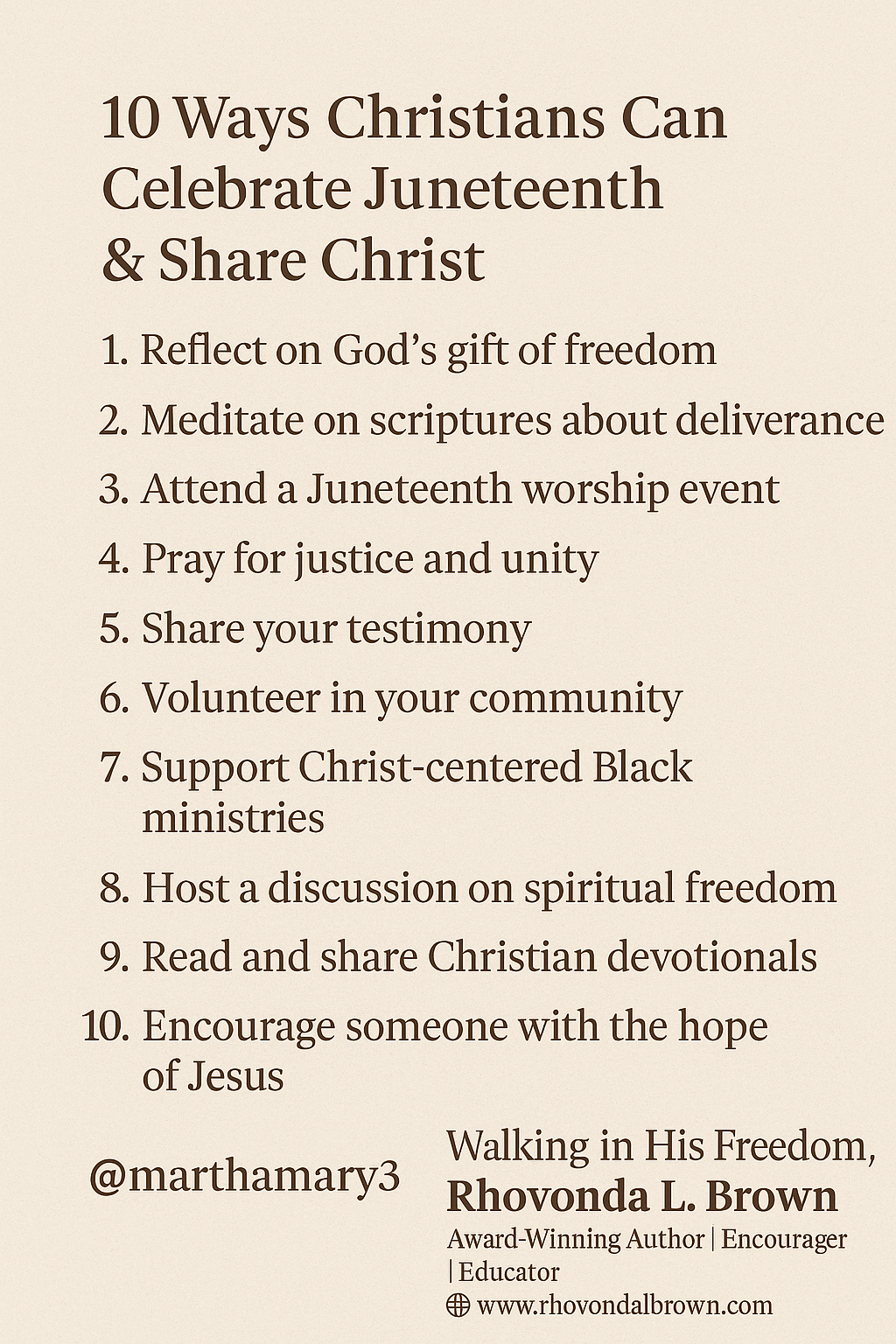 So, as we celebrate Juneteenth, let’s also celebrate the freedom Jesus died to give us. Let’s live it out. Let’s walk in it. Let’s walk in freedom—boldly, joyfully, and intentionally—serving God first, and loving others well.