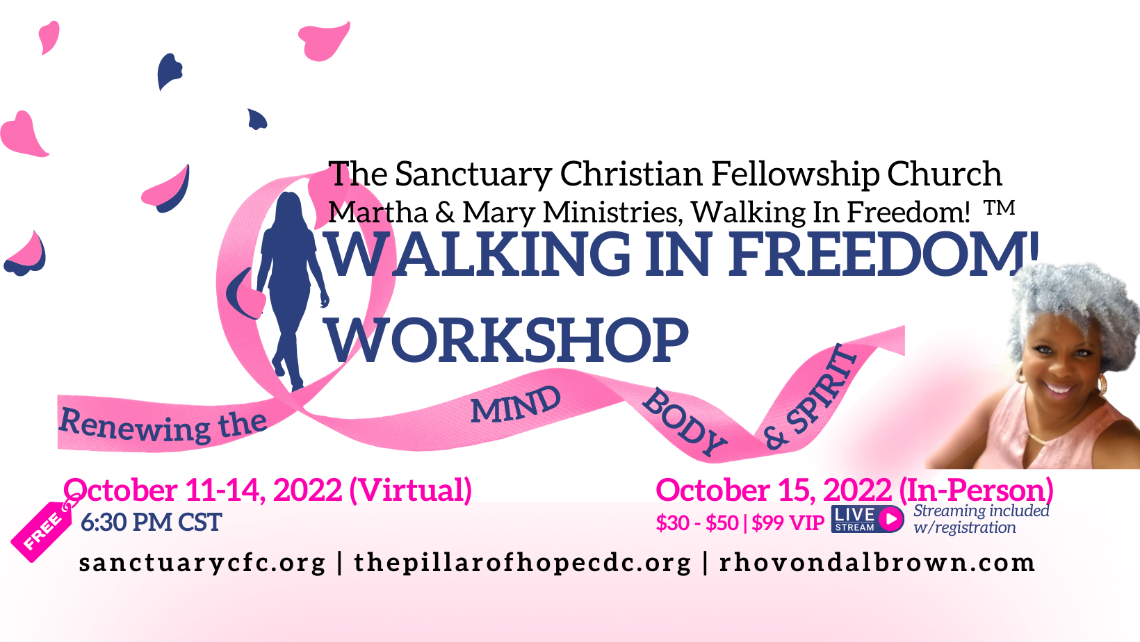 Throughout the virtual workshop, we will have breakout networking sessions, and will close out the event with a live panel where you can come and interact live with our incredible experts and advocators! Friday, October 14th, is Ladies’ Night. Wear your pink PJs or something pink for breast cancer awareness. This will be the last night for our virtual workshop and we’re celebrating resilience, freedom, healing, and victory. We’re going to have great conversations, giveaways, and a fun time! Make sure your face is in the place.